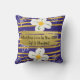 Este travesseiro quadrado exibe dois designs diferentes - ambos apresentando grandes flores brancas. O design azul tem texto lendo 'Quando Jesus Vive em seu Coração A Vida É Bonita!' Um belo presente para uma mulher de fé cristã. Este texto pode ser substituído para personalização.