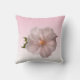 Este travesseiro decorativo bonito caracteriza uma única flor de cerejeira rosa pálido requintado com gotas da água de uma chuva recente banhada em uma luz de incandescência rosado. É ajustado em um inclinação pastel cor-de-rosa. A imagem é repetida na parte traseira.