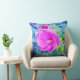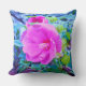 Almofada Flor de Hibisco Rosa Elegante com Folhagem de Aqua