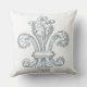 Este é um travesseiro decorativo atrativo para sua casa. Tem uma flor de lis cinzenta do vintage extravagante em um travesseiro branco.