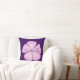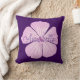 Uma flor de Lavatera cor-de-rosa solteiro com o seu próprio nome num travesseiro roxo escuro.
