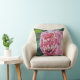 Almofada Flor rosa de pedônia com folhas e palavras verdes