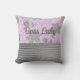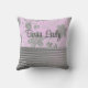 Neste travesseiro de na moda é um padrão floral prateado em um pano de fundo cor-de-rosa onde você pode personalizá-lo com um nome, logotipo ou frase ou mantê-lo como está com as palavras "Senhora Chefe" que é limitada por um colar prateado e abaixo que são listras prateadas brilhantes para chic adicionado.
