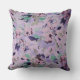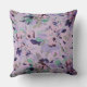 Almofada de sotaque lilás com salpicos de flores de aquarela rosa, verde e púrpura.