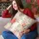 Almofada Floral De Xadrez Branca E Vermelha