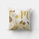 Travesseiro decorativo moderno com floral em dourados e branco e um monograma de ouro personalizável. Fundo branco