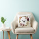 Travesseiro personalizável que apresenta uma camada de cor de água floral, cor-de-rosa e branca, de cor azul, com acentos de folhagem verde. Esta coroa elegante arma um monograma preto clássico. Fácil de personalizar e faz um presente de excelente.