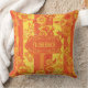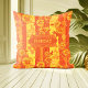 Um design cor, vivo e com dois tons de tona, com flores amarelas e laranja brilhantes contra fundo amarelo listrado e laranja.