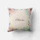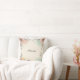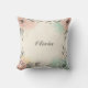 Este travesseiro decorativo personalizado apresenta flores rascunhadas e encantadoras em cantos com texturas aquáticas moles, cor-de-rosa-pincel e verde-menta.