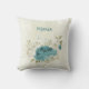 Lindo travesseiro romântico com flores azuis e brancas e algumas folhas verdes bonitas .