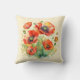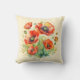Um travesseiro decorativo bonito com um design de papoilas vermelhas selvagens em estilo aquarela, sobre fundo creme leve. O design está em ambos os lados do travesseiro. A almofada adiciona um toque elegante de charme rústico a qualquer quarto na casa, e faz um presente floral ideal para amantes da natureza e do exterior.