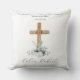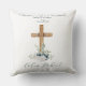 Este elegante travesseiro floral personalizado apresenta uma imagem de aquarela religiosa no centro. Uma cruz de madeira é acentuada com flores brancas e azuis, e delicada verde. Por cima da cruz de madeira, é impressa uma amostra de verso de bíblia para o nascimento de um bebê, com uma amostra de nome impresso a seguir. Você pode personalizar o travesseiro para incluir seu próprio nome personalizado ou texto.