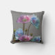 FLORES da PAPOILA COR-DE-ROSA & AZUL no travesseiro decorativo CINZENTO da ARTE de ZAZZLE.