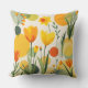 Este padrão floral alegre é inspirado pelo design moderno do século médio. Os brilhantes tons amarelos e laranja vão iluminar sua decoração. Por favor, note que o verso é um verde macio coordenado.