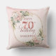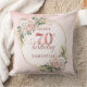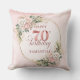 Celebre 70 anos com estilo com este travesseiro dourado rosado brilhante. Com flores de aquarela rosa empoeirado, rosa claro e rosa suave, folhagens exuberantes, acentos de eucalipto e uma moldura dourada, este design boho, floral e boêmio é um presente perfeito para um travesseiro de 70 anos de idade.