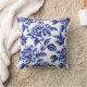 Um travesseiro com um padrão de toile de flores de dália azul e branca.
