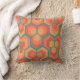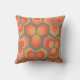 Esse travesseiro decorativo tem um design geométrico de hexágonos em conjuntos de três, que se parecem com flores em ouro, laranja e vermelho em um campo de chá.