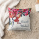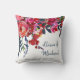 Largura de belos rosas de peônias boêmicas buquês em tons vermelhos e cor-de-rosa de burgundy, magenta, rosa quente, blush e violeta com fazer de folhagem azul-marinho e travesseiro decorativo decorativo elegante e vibrante. Personalize-o com os primeiros nomes do casal e o ano em que eles estão juntos. Um presente perfeito para recém-casados ou um casal de aniversário!