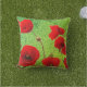 Almofada Flores de Papoula Vermelho Verde Brilho Artístico