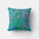 Travesseiro decorativo com pintura floral em tons azuis e verdes, flores silvestres, típicas do verão do norte - palha, vagabunda e bluebell. © Julia Khoroshikh www.juliakhoroshikh.art #floralart #stilllife #summervibes #wildflower #throwpillows#travesseiros #cushions #zazzlemade