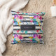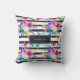 Este travesseiro colorido, à moda caracteriza listras preto e branco clássicas da aguarela com a aguarela na moda, brilhante floresce nas máscaras de roxo, de azul, a turquesa, o amarelo, e o branco.
