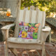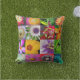 As flores coloridas brilhantes posicionadas ao lado das criaturas do jardim tais como um sapo, uma libélula, e um lagarto, fazem um presente bonito para o jardineiro e como um destaque no pátio ou no balcão. Também disponível como travesseiros internos.