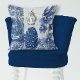 Almofada Flores Francesas na Colagem de Pássaros Azul e Bra
