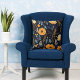 Almofada Flores Laranja Elegantes Flores Azuis Folhas Negra