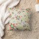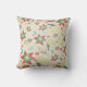 Flores de poinsettia estilizadas foram reimaginadas em vermelho, verde e ouro. Foram rodeados de folhas e bagas sagradas com cores douradas, verdes e marrons. As faixas do lado oposto do travesseiro estão nas mesmas cores que as da frente.