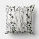 Um bonito travesseiro floral preto e branco, decorado com flores silvestres, plantas e gramíneas em tons suaves de água de cinza.