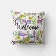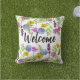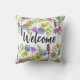 Este bonito travesseiro decorativo botânico apresenta flores silvestres e uma mensagem de boas vindas para seus visitantes. Use dentro e fora, escolha seu tecido no check-out para obter um que você possa usar ao ar livre para decorar sua varanda ou baralho dianteiro para uma festa.