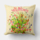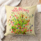 Conjunto de flores silvestres e texto Flores Silvestres. Almofada de lançamento colorida e encantadora com flores silvestres de prado coloridas em fundo bege.