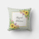 Girassóis de aquarelas, moldura dourada e travesseiro decorativo geométrico verde. Um design adorável mostrando um belo buquê de girassóis nos cantos de uma armação de ouro e um padrão geométrico verde e branco.