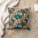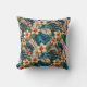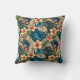 Lindas flores tropicais em marfim com centros de laranja, cercadas por bronzeadas, azuis e folhagem verde criam um belo travesseiro decorativo que você vai amar.