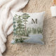 Almofada Floresta e lago de pinheiros verdes monogramados