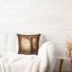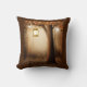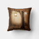 Travesseiro com uma ilustração quimicamente encantadora em cores ricas marrom e amarelo. Uma floresta mística mágica com uma grande árvore segurando uma lanterna antiquada. Luzes de fada dançando ao redor. Um design maravilhoso e encantador.