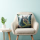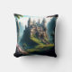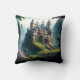Travesseiro decorativo de um lindo, imaginativo, clássico conto de fadas em um campo verde e luxuoso com flores rosa. Isto foi feito usando Leonardo.