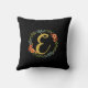 almofada monofórica floral com uma coroa floral e um guião fofo inicial manuscrito. Almofada de excelente para o seu interior. Personalizar selecionando a cor de fundo