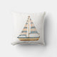 Este travesseiro decorativo bonito apresenta um belo veleiro a aquarela com listras azuis e creme e azul consistente no verso.
