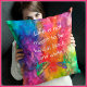 Um lado desse travesseiro decorativo colorido mostra borboletas vibrantes com efeito 3D, o outro é acentuado com uma sutil. O texto na frente é totalmente personalizável e, se você estiver procurando apenas gravata simples, todas as borboletas e texto podem ser removidos. Uma bela peça de sotaque para qualquer sala temática cigana, hippy, boho ou boêmia.
