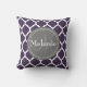 Legal padrão quatrefoil giz púrpura, cinza e branco marroquino de lattice quatrefoil com cinza nameplate para sua letra e nome iniciais do monograma personalizado. presente de excelente para meninas que amam padrões geométricos e presentes monogramas.