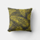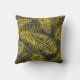 Na moda travesseiro decorativo de folhas tropicais de ouro amarelas, sobre fundo de cinza de carvão.