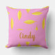 Almofada Folha seca amarela nome personalizado rosa
