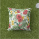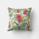 Este divertido travesseiro ao ar livre apresenta um padrão de folhas e flores tropicais coloridas de aquarelas.
