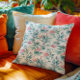 Almofada Folhas tropicais cor-de-rosa flamingos