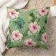 Almofada Folhas Tropicais Cor-de-Rosa Verde Folha de Hibisc