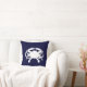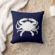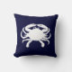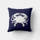 Forma de caranguejo branco contra azul náutico escuro. A espécie é um caranguejo azul. Você sempre poderia adicionar uma mensagem de texto personalizada, como um nome de família. Ou apague o caranguejo na parte de trás e adicione suas informações familiares e/ou fotos lá atrás. Crie seu próprio travesseiro da casa de praia.