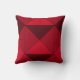 Belo Travesseiro decorativo com formas geométricas modernas em tons vermelhos claros e escuros. Este design moderno contém quadrados, diamantes e pirâmides vistos de cima.