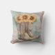 Os girassóis de ouro pervertidos do topo das botas de cowboy neste travesseiro único e rústico. As imagens de aquarela são colocadas sobre um fundo de abstrato e painel de madeira. Uma cobertura de geada dá à cena um olhar de meteoros. A parte de trás do travesseiro é idêntica à da frente.