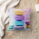 Travesseiro com uma fotografia deliciosa com uma pilha de macarões coloridos.